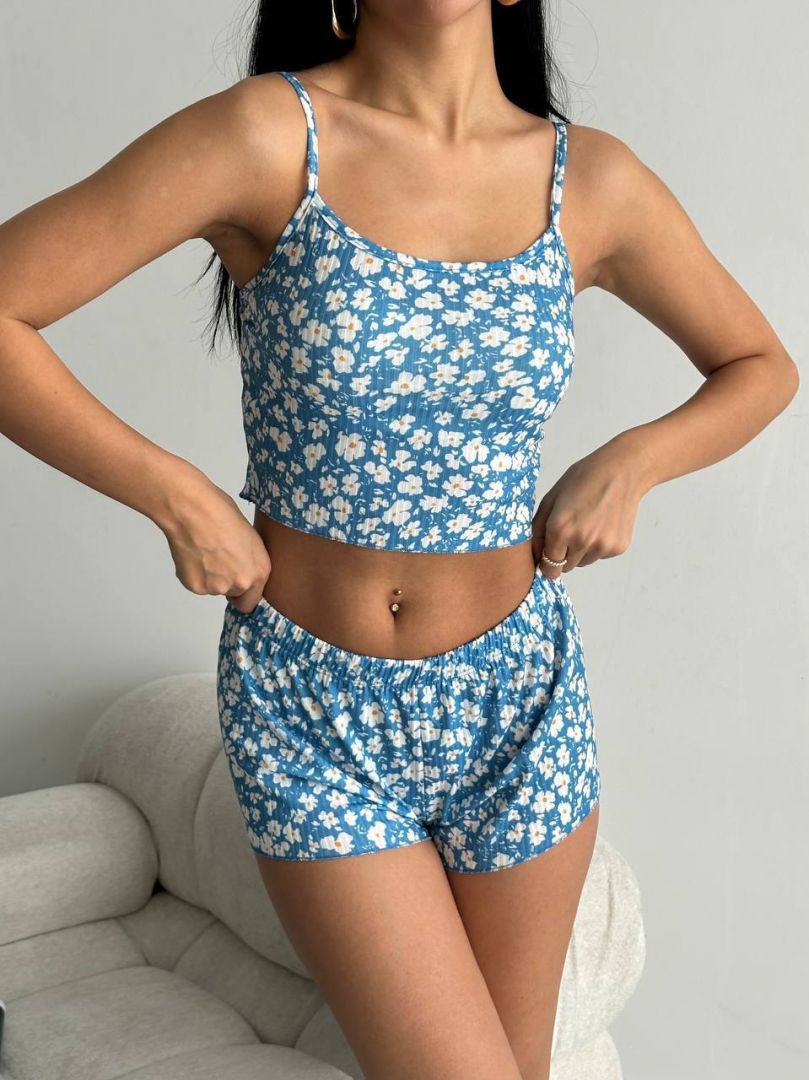 Desenli kısa baby takım mavi